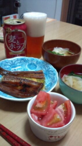 穴子、ちこたんには受けなかったなぁ。 ニラ入りワンタンスープ、トマト、麦とホップ赤。 土曜日なので、先日買っておいたハートランドも開けました。 はわー、幸せ。