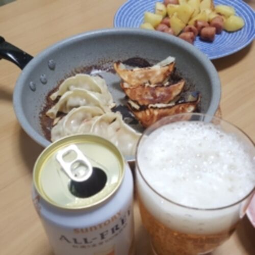 今日は餃子を焼きました。 「焼きすぎかな?」というくらいまで焼くと、かりかりで美味しいの! わたしはビールがなくても、ごはんがなくても餃子が食べられます(笑)