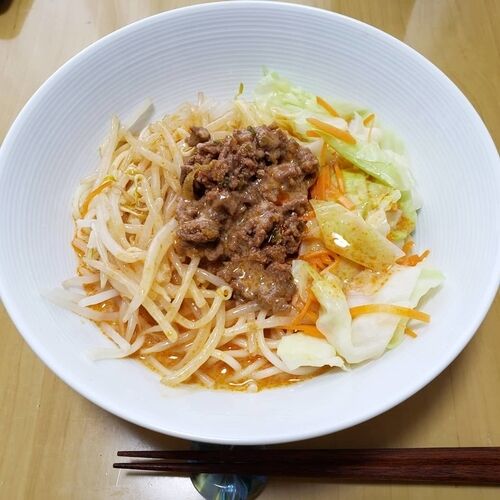昨日は寝ているときに暑くなってきて、扇風機をつけました。 あとから気温を見たら、昼間より夜中の方が気温が上がってました。 今日のお天気も晴れたり降ったり風が強かったりで忙しい。 お昼は冷やし担々麺。 肉みそ、もやし、茹でキャベツ。 長ネギをたっ…